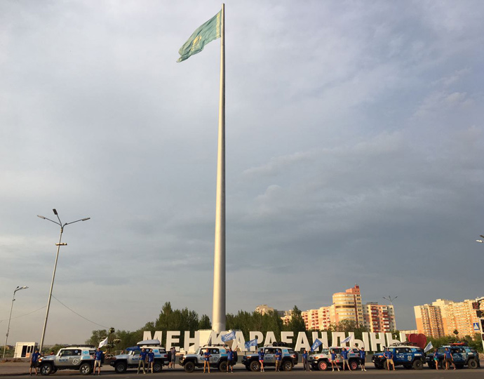 Путешествие началось с торжественного отправления участников экспедиции с площади Республики в г. Алматы. Так совпало, что эта дата — не только дата начала проекта, но и еще одно замечательное событие — исполнилось ровно два года с момента создания клуба любителей FJ Cruisers в Казахстане.